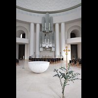 Seitlicher Blick auf Ambo, Altar und Orgel