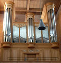3 Manuale, 45 Ranks, 35 Register 2004-2006 erbaut von Jürgen Lutz (D, Feuchtwangen) Mechanisch-elektrische Traktur (Doppeltraktur) mit Setzerkombinationen Vorgängerorgeln: 1483 besaß das Münster 2 Orgeln 1514-1515 Neubau der Chororgel durch Hans Kindler (D, Ingolstadt) Die Hauptorgel wurde kaum gespielt und verfiel; spätestens 1711 mit dem Abriss der Empore verschwand sie um 1600 Neubau bzw. erhebliche Erweiterung der Chororgel durch Peter Grünewald (D, Nürnberg) nach Beschädigung im 30-jährigen Krieg (die meisten Pfeifen wurden geraubt) Wiederherstellung durch Matthias Tretzscher (D, Kulmbach) um 1680 Bau einer weiteren Orgel mit 8 Registern durch Johann Nabernegk (D, Bayreuth) 1792 Reparatur und Erweiterung um einen Solocional 4' im Oberwerk 1851-1866 erneuter Umbau der Kirche, dabei Abbau der Orgel und Spielbarmachung des Oberwerks als Interimsorgel auf einer provisorischen Empore 1887 Neubau durch Steinmeyer (D, Oettingen) 1959 Neubau durch Steinmeyer 2004 Abbruch dieser Orgel |