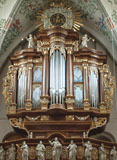 2 Manuale, 29 Ranks, 23 Register (+ 3 Tr.) 2013 Historisierender Neubau / Rekonstruktion im Barockgehäuse 1715 durch Weimbs (D, Hellenthal) + Nachtigall ohne Manualzuordnung Vorgängerorgeln: im 14. Jh. erste Erwähnung eienr Orgel 1715 Neubau in einem vermutlich vorhandenen Gehäuse aus dem 17. Jh. vermutlich von Balthasar König (D, Bad Münstereifel) 1875 Umbau durch F.W. Sonreck (D, Köln) 1908 romantisierender Umbau, Umdisponierung und Pneumatisierung durch Romanus Seifert (D, Kevelaer) 1940 Ausbau des Orgelwerks und Planung eines Neubaus, der aufgrund der Kriegswirren nicht ausgeführt wurde 1948 Wiedereinbau des Orgelwerks in Eigenleistung der Gemiende, dabei Umdisponierung von 3 Registern durch Willi Peter (D, Köln) 1967-1970 Neubau im alten Gehäuse + Chororgel durch Willi Peter (D, Köln) - dabei Verlust des wenigen noch verbliebenen historischen Materials Die Kirche verfügt außerdem über eine separate Chororgel mit 37 Ranks / 26 Register (+ 2 Ext. + 16 Tr.) auf 3 Manualen (Eule, 2018) |