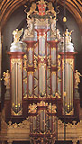 Hauptorgel mit das Rückpositiv trangenden Figuren