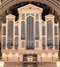3 Manuale, 103 Ranks, 81 Register (+ 3 Ext. + 12 Tr. + 1 Sonst.) 2022 Chororgel erbaut von Juget-Sinclair (CAN, Montréal) 2024 Hauptorgel neu erbaut von Juget-Sinclair Schleifladen mit mechanischer Spieltraktur und elektrischer Registertraktur mit Setzerkombinationen; + Rossignol + Clochettes (2 drehende Sterne), Deagan Chimes (g''-g'''') ohne Werkzuordnung Chororgel ist elektrisch vom Spieltisch der Hauptorgel aus spielbar Vorgängerorgeln: 1906 erbaut von John Brown 1912 Umbau und Erweiterung durch M.P. Möller (USA, Hagerstown) 1991 Umbau und Erweiterung durch Shenandoah Organ Studio |