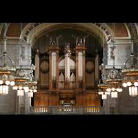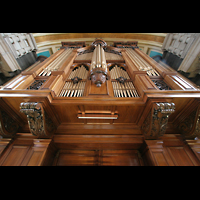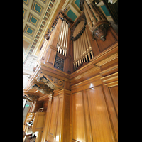 Blick über die Pfeifen des Gallery Great entlang der Gallery Organ zur Gospel Organ |