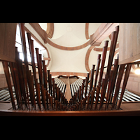 Blick über das Rückpositiv der Hauptorgel zur Emporenorgel |