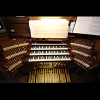 Barbara Dennerlein am Spieltisch der Hauptorgel |