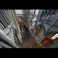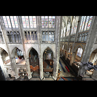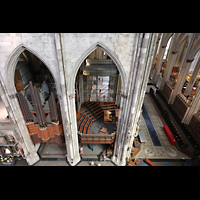 Blick vom nordwestlichen Triforium auf die Querhausorgel und zum Chorraum |