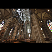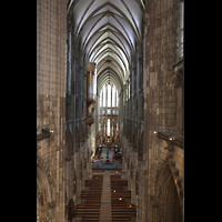 Blick vom westlichen Triforium in den Dom und zur Langhausorgel |