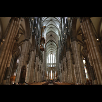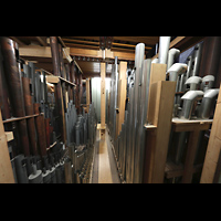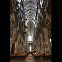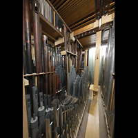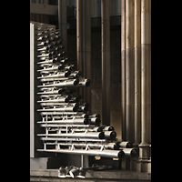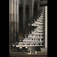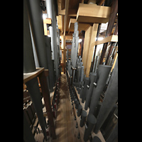 Blick von den Hochdrucktuben an der Westwand in den Dom und zur Langhausorgel |