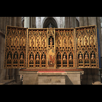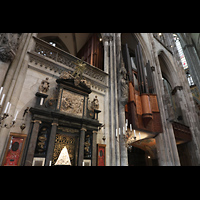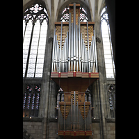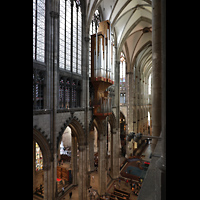Querhausorgel mit Zentralspieltisch vom nordwestlichen Triforiumsumgang aus gesehen |