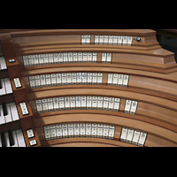Zentralspieltisch und Rückpositiv der Querhausorgel von oben |