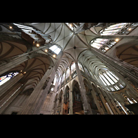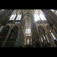 Blick vom süddwestlichen Triforium auf die Langhausorgel und zur nordöstlichen Vierung |