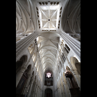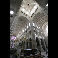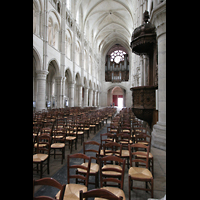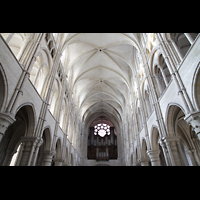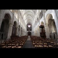 Innenraum in Richtung Rückwand, rechts die Orgel |