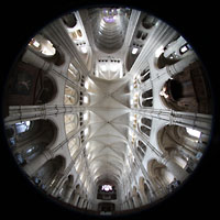 Blick vom Dach der Orgel nach unten in den Saal und auf die Chamaden |