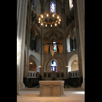 Chororgel, Vierung mit neuem Altar und Blick zur Hauptorgel |