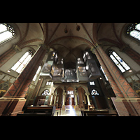 Blick von der Empore im nördlichen Querhaus zur Haupt- und Chororgel |