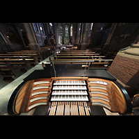 Chamaden, Spieltisch und Rückpositiv mit Blick zum Chor |