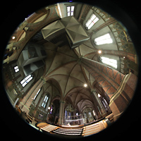 Blick von der Empore im nördlichen Querhaus zum Chorraum |