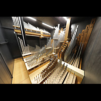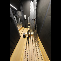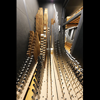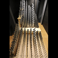 Einzeltonladen und Pedalpfeifen des Flötenbass 16' (links) und Untersatz 32' |