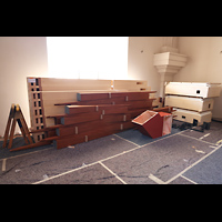 Blick vom Chorraum auf die Balkonorgel Süd im Aufbau im Juli 2023 |
