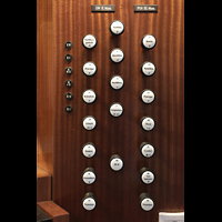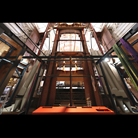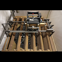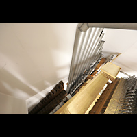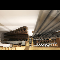 Pfeifen Fernorgel, untere Etage, links hinten: Pedal, ganz links: Röhrenglocken, links unten Schweller |