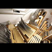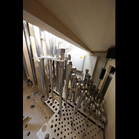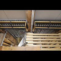 Blick von oben auf die Pedalpfeifen der Fernorgel |