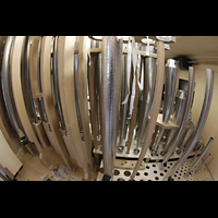 Pfeifen in der unteren Etage der Fernorgel, links die Becher der Posaune 16' |