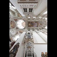 Blick vom Chorraum ins Langhaus, zur Hauptorgel, Chororgel und zum Nordbalkon |