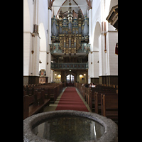 Blick über den Taufstein aus dem 12. Jh. zur Orgel |