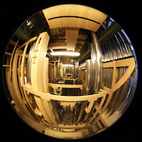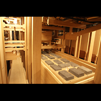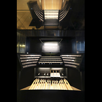 Hauptspieltisch mit Reflexionen an der Unterseite des Orgelgehäuses |