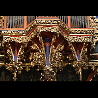 Gotischer Lettner mit Darsteollung der vier Evangelisten, darüber die Orgel |