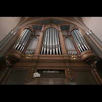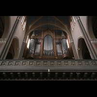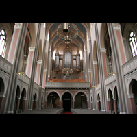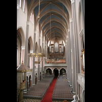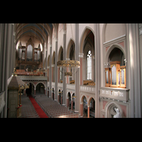 Blick von der oberen Seitenempore auf die Orgel und in die Kirche |