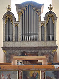 2 Manuale, 19 Ranks, 16 Register 1840 erbaut von Mauracher 1917 Zwangsabgabe der Prospektpfeifen im 1. Weltkrieg 1927 Ersatz der Prospektpfeifen durch Zinkpfeifen und Ersatz einiger Register durch 8'-Streicher durch die Cäcilia AG (A, Salzburg) 1964 Teil-Wiederherstellung der ursprünglichen Dipsosition (allerdings mit umintoniertem Cäcilia-Pfeifenmaterial), Umstellung auf die untere Empore und Bau eines freistehenden Spieltischs durch Pirchner (A, Steinach) 2018-2020 restauriert von Klais (D, Bonn) - ganz oder weitgehend original erhaltene Register mit * markiert, andere wurden rekonstruiert Vorgängerorgel: 1822 erbaut mit 7 Registern von Bartlmä Unterberger |