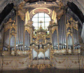 3 Manuale, 62 Ranks, 45 Register 1895 teilweise im alten Gehäuse von 1750 erbaut durch Gebr. Rieger (jetzt Rieger-Kloss, CZ, Krnov (Jägerndorf)) 1991 Restaurierung und Wiederbesetzung des Rückpositivs durch Karl Schuke (D, Berlin) - neue Register durch * gekennzeichnet Rückpositiv ist mechanisch von einem eigenen Manual aus spielbar oder elektrisch vom 2. oder 3. Manual der Hauptorgel |