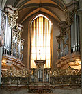 3 Manuale, 60 Ranks, 40 Register 1714 erbaut mit 40 Registern auf 3 Manualen und Pedal von Johann David Sieber (Brünn, heute CZ) 1742 Umbau (u.A. Entfernung des Rückpositivs und Einbau eines Hinterwerks) durch Gottfried Sonnenholz im 19. Jahrhundert romantisierender Umbau Zwangsabgabe der Prospektpfeifen im 1. Weltkrieg 1972 Rückbau des Rückpositivs, aber Veränderung nahezu des gesamten Pfeifenmaterials durch ? 1986-87 Restaurierung auf den Ursprungszustand durch Jürgen Ahrend (D, Leer) |