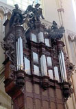 3 Manuale, 47 Ranks, 30 Register 1719 erbaut auf dem Lettner von Van Eynde 1865 umbegaut von Hooghuys 1902: Changes by Georges Cloetens. 1902 umgebaut von Cloetens 1935-1936 Versetzung des Lettners an die Westwand, in diesem Zuge Umbau und Erweiterung der Orgel (Echo entfernt, zwei Pedaltürme hinzugefügt) durch Klais (D, Bonn) 1957 und 1988 umgebaut von Loncke en Zonden 2016-2022 Restaurierung der Orgel und auf die ursprüngliche Dipsosition (plus 4 neue Pedalregister) und Umsetzung auf die neu erbaute Orgelbühne am rechten Choreingang durch Guido Schumacher (B, Eupen) dabei wurden die erhaltenen Van Eynde-Register restauriert, der Rest gemäß Originaldisposition rekonstruiert und die originalen Gehäuseteile wiederverwendet Die Kathedrale verfügt außerdem über eine separate Seitenorgel im Hauptschiff mit 40 Ranks / 35 Registern (+ 4 Ext. + 6 Tr.), Hill 1851 / Conacher 1927 / Skrabi 2011 |