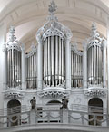 3 Manuale, 51 Ranks, 39 Register 1848-1851 erbaut von Joseph Merklin (B, Lüttich) 1883-1887 Umbau (neue Mechanik, neuer Spieltisch, neue Windanlage und Erweiterung um eine Voix céleste) durch Pierre Schyven 1934 Umintonation durch Delmotte 1976 Abbau und Einlagerung in Erwartung der geplanten Kirchenrenovierung, die sich noch lange hinzog 2014 Wiederaurbau und Restaurierung inkl. Erweiterung um 3 Register (mit * markiert) durch Guido Schumacher (B, Eupen) |