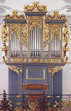 1 Manual, 10 Ranks, 8 Register 1692-1693 erbaut von Christoph Albrecht (Waldshut) Keine Angaben über zwischenzeitliche Umbauten 1981-1984 restauriert von Goll (CH, Luzern) - etwa die Hälfte des Materials war noch original erhalten Vorgängerorgeln: 1457 zwei Chororgeln (keine genauen Angaben), die später verschenkt werden 1591 neue Chororgel mit 5 Registern von ? 1608 Umbau der Chororgel von 1591 und Neubau einer zweiten Chororgel mit 8 Registern durch Thomas Schott (CH, Urach) 1692 Verschwinden der kleineren Chororgel und Einbau der größeren in die große Orgel auf der Westempore durch Albrecht Die Stiftskirche verfügt außerdem über eine separate Hauptorgel mit ca. 36 Ranks / 27 Registern auf 2 Manualen (Kiene 1842 / Graf 1982) sowie über eine Epistelorgel mit 28 Ranks / 22 Registern auf 2 Manualen (Graf 1960) |