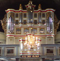 3 Manuale, 50 Ranks, 34 Register, ca. 2.200 Pfeifen 1719-1720 erbaut mit 26 Registern auf 2 Manualen und Pedal von Johann Hinrich Klapmeyer 1857/58 Umbau durch Marcussen (DK Aabenraa) 1898 Reparatur durch Marcussen 1917 Zwangsabgabe der Prospektpfeifen zu Kriegszwecken 1925 Ersatz der fehlenden Prospektpfeifen durch Zinkpfeifen durch Wilhelm Sauer (D, Frankfurt/Oder) 1935 Umbau durch Sauer - dabei Erweiterung des Tonumfangs auf C-f''' (Manualer) und C-f' (Pedal) sowie Einbau eines Schwellkastens für das Brustwerk, der 1936 wieder entfernt wurde 1959-1960 Umbau durch Emanuel Kemper (D, Lübeck), dabei Hinzufügung eines Rückpositivs und Wiedereinbau des Schwellkastens für das Brustwerk 1990 Restaurierung durch Alfred Führer (D, Wilhelmshaven), dabei Entfernung des Schwellkastens und Ersatz durch zwei Pfeifenfelder sowie Umdisponierung des Rückpositivs 2021 Generalreinigung und Reparatur durch Heiko Lorenz Schleifladen mit mechanischer Spiel- und Registertraktur + Zimbelstern (ohne Werkzuordnung) |