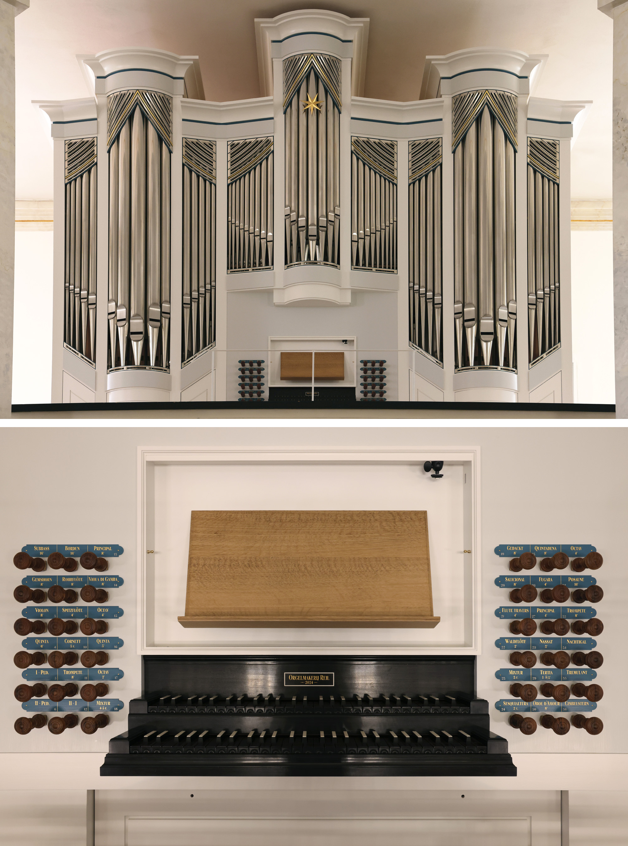 Hauptorgel mit Spieltisch perpsktivisch Photo: © Martin Doering