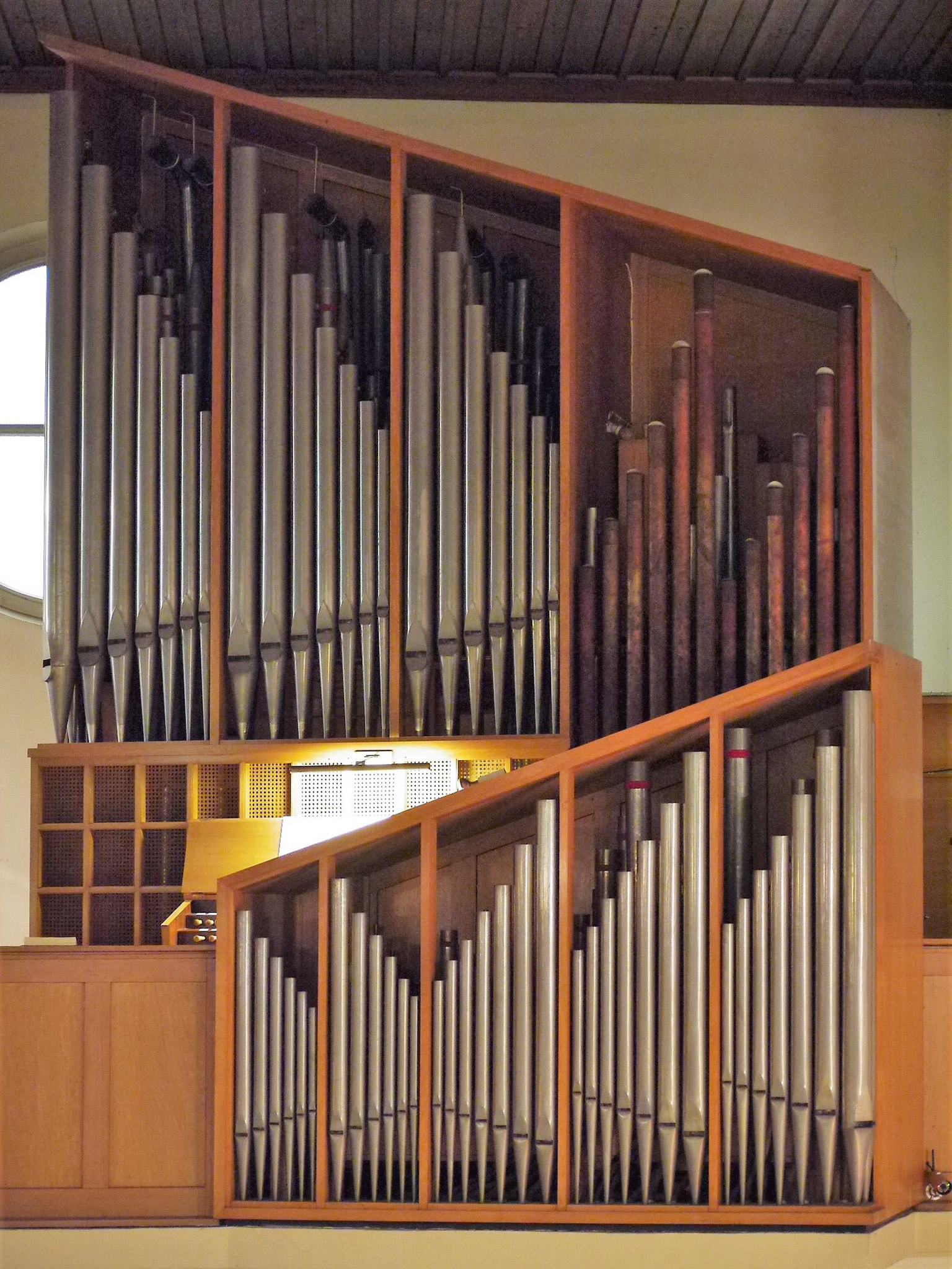I. Rückpositiv | C-g''' | 12 (8) | II. Hauptwerk | C-g''' | 13 (8) | Pedal | C-f' | 8 (6) | ||||||||