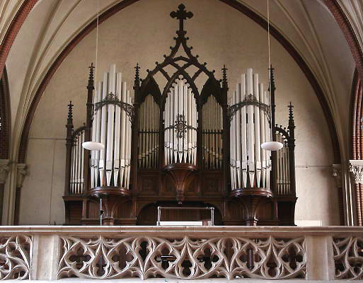 I. Hauptwerk | C-g''' | 18 (13) | II. Oberwerk | C-g''' | 13 (9) | III. Schwellwerk | C-g''' | 12 (9) | Pedal | C-f' | 13 (9) | |||||||||||