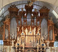 4 Manuale, 81 Ranks, 66 Register (+ 3 Ext. + 7 Tr.), 4.291 Pfeifen 2020-2022 neu erbaut von Goll (CH, Luzern) Schleifladen mit mechanischer Spieltraktur und mechanisch-elektrischer Registertraktur mit Setzerkombinationen Besonderheiten: Windumschaltung ("lebendigerer" Wind) für die manuale I, II und IV; + Nachtigall + Zimbelstern (20 Titan-Stäbe) ohne Werkzuordnung Vorgängerorgeln: 1642 erste Orgel auf der Westempore mit 26 Registern auf 2 Manualen von Andreas Weiß (D, Meiningen) 1662 Erweiterung durch Friedrich Besser (D, Braunschweig) 1689 Umsetzung auf die Ostempore durch Martin Vater (D, Hannover) 1757-1759 Neubau mit 45 Registern auf 3 Manualen durch Johann Georg Eggert 1775 und 1793 Renovierungen durch Zuberbier im 19. Jh. diverse Eingriffe und Umbauten 1888 Neubau im alten Gehäuse mit 40 Registern auf 3 Manualen durch Franz Eggert (D, Paderborn) 1957-1960 technischer Neubau im alten Gehäuse mit 39 Registern unter Wiederverwendung einiger Eggert-Register durch Hermann Hillebrand (D, Hannover) In den 70-er Jahren bereits starke Schäden durch Heizung usw. 1975-1976 Neubau mit 59 Ranks / 41 Registern im Barockprospekt von 1759 von Paul Ott (D, Göttingen) |