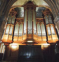 4 Manuale, 70 Ranks, 52 Register 1817-1819 erbaut von Johann Simon Buchholz (D, Berlin) - erhaltene Register mit "B" gekennzeichnet 1840 Dispositionsänderung durch Johann Friedrich Schulze (D, Paulinzella) - erhaltene Register mit "S" gekennzeichnet 1866 Umbau und Erweiterung durch Barnim Grüneberg (damals D, Stettin) - erhaltene Register mit "G" gekennzeichnet 1912 geringfügige Veränderungen durch Grüneberg 1917 Zwangsabgabe der Prospektpfeifen zu Kriegszwecken; nach Kriegsende Ersatz durch Zinkpfeifen 1935 Umbau und Umdisponierung durch W. Sauer (D, Frankfurt/Oder) nach dem 2. Weltkrieg zunehmender Verfall der Orgel, nur geringfügige Reparaturen 1998-2002 Restaurierung auf den Zustand von 1866 durch Christian Scheffler (D, Sieversdorf) 2007 Ersatz des alten (nie richtig funktionierenden) Dulcian 16' im Unterwerk durch einen historischen Sauer-Dulcian 8' Vorgängerorgeln: 1546 erste Erwähnung einer Orgelreparatur, demnach gab es bereits vorher eine Orgel 1570 Neubau einer Orgel durch Meister Fabian nach mehrmaligen Zerstörungen der Kirche gab es immer wieder Orgelneubauten 1705-1706 Orgelneubau durch Zacharias Paul Müller (D, Wittstock) 1742 Erweiterung um 6 neue Pedalregister durch Christian Gottlieb Richter (D, Stralsund) 1779 Reparatur der inzwischen unspielbar gewordenen Orgel durch Friese (D, Cummerow) |