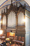 2 Manuale, 35 Ranks, 28 Register 1898 erbaut von Hermann Eule (D, Bautzen) 2017 Generalüberholung und klangliche Restaurierung durch Eule Rekonstruierte oder teilrekonstruierte Register mit * markiert Mechanische Kegelladen mit mechanischer Spiel- und pneumatischer Registertraktur, Mezzoforte, Forte, Tutti, gleichschwebsnde Stimmung mit a = 433,5 Hz bei 15°C |
