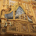 2 Manuale, 30 Ranks, 23 Register ca. 1759 erbaut von Johann Christian Köhler (D, Frankfurt/Main) ca. 1867-1872 umfassende Reparatur der Orgel durch Josef Wiedemann (D, Bamberg) und Augustin Bittner (D, Nürnberg) 1954 erste Restaurierung durch G.F. Steinmeyer (D, Oettingen). Die Orgel war nahezu unverändert erhalten 2012 umfassende Restaurierung durch Klais (D, Bonn) Unsichere Angaben zur Manualzuordnung / Koppeln: Entweder lt. alter Quelle I = HW, II = Pos. oder Pedalkoppel vermutlich II (HW)-P; Hohlflöte im HW unsicher Die Abteikirche verfügt außerdem über eine separate Hauptorgel mit 87 Ranks / 56 Registern auf 4 Manualen (Seuffert, 1743 - Eisenbarth 1984) und eine weitere Chororgel mit 17 Ranks / 13 Registern auf 1 Manual und Pedal (Köhler, 1753) |