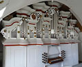 2 Manuale, 24 Ranks, 19 Register 1780 erbaut von Johann Michael Hesse (D, Dachwig) 1997-2020 restauriert in mehreren Abschnitten von Orgelbau Schönefeld (D, Stadtilm) 2017 Einbau eines neuen Winderzeugers Schleifladen mit mechanischer Spiel- und Registertraktur, Tremulant auf ads ganze Werk + Glockenakkord C+G, Stimmung: gleichschwebend, a' = 497,6 Hz bei 15°C (ca. 1 Ganzton höher) |
