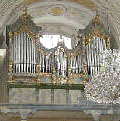 2 Manuale, 25 Ranks, 22 Register 1906 im alten Gehäuse aus dem späten 18. Jahrhundert erbaut von Franz Borgias Maerz 1930 Umbau durch ? 1973 Einbau von Mixturen, Neubau der Windversorgung und Umbau auf elektrische Traktur durch ? 2006 Restaurierung in Annäherung an den Originalzustand und Renovierung durch Hartwig Späth (D, Freiburg) Aus Kosten- und Platzgründen wurde die elektrische Traktur beibehalten |