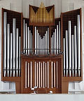 3 Manuale, 51 Ranks, 37 Register 1972 erbaut von Eisenbarth (D, Passau) 2019 grundlegende Renovierung, geringfügige Dispositionserweiterung (neue Register mit * markiert), Neuintonation, Einbau elektronischer Koppeln und Erneuerung der Pedaltraktur durch Hubert Sandtner (D, Dillingen) Schleifladen mit mechanischer Spieltraktur und elektrischer Registertraktur mit 6.400 Setzerkombinationen - keine Tremulanten angegeben |