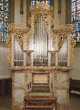 3 Manuale, ca. 38 Ranks, ca. 31 Register (+ 1 Ext.)) 1987-1989 technischer Neubau im Gehäuse von 1762 durch Rensch (D, Lauffen) 2010 Erweiterung um 2 Register im HW und neues Pedal (das alte wurde zum 3. Manual) durch Rensch Schleifladen mit mechanischer Spieltraktur und mechanischer und elektrischer Registertraktur mit Setzerkombinationen Vorgängerorgeln: 1699 erste Orgel mit 6 Registern von Eberhard Vischer (D, Herrenberg) 1761-1762 Erweiterung auf 11 Register (1 Manual ohne Pedal) und neuer Prospekt durch Johann Sigmund Haußdörffer 1913 Umsetzung in den Chor und durchgreifender Umbau und Pneumatisierung durch Friedrich Weigle (D, Echterdingen) - damals 14 Register auf 2 Manualen und Pedal plus viele Transmissionen |
