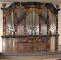 1 Manual, 18 Ranks, 14 Register, 658 Pfeifen 1723 erbaut von Zacharias Hildebrandt 1840 Entfernung des Tremulanten und der Pedal-Posaune, stattdessen Einbau eines Principal 8' durch Urban Kreutzbach (D, Borna) 1905 geringfügige Änderungen von Schmidt & Berger (D, Borna) 1934 Tieferstimmung um 1/2 Ton durch Umhängen der Traktur sowie Ersatz der fehlenden Posaune auf einem eigenen Stock durch Hermann Eule (D, Bautzen) 2008 Restaurierung durch Eule + Tremulant für das ganze Werk |