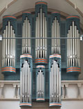 3 Manuale, 74 Ranks, 56 Register (+ 1 Sonst.) 1930 erbaut mit 45 Registern auf 3 Manualen von B. Speith (D, Rietberg) in den 1950-er und 1970-er Jahren Umbauten durch ? 1992 technischer Neubau, neues Gehäuse mit Rückpositiv und Erweiterung auf 51 Register durch Siegfried Sauer (D, Höxter-Ottbergen) 2014-2015 Reparatur, Umbau und Erweiterung durch Rieger (A, Schwarzach) - dabei Übernahme von 36 Registern, darunter alle erhaltenen spätromantischen Pfeifen |